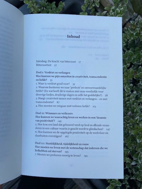 In het begin van Bitterzoet staat een vragenlijst waarmee je er achter kunt komen hoe bitterzoet je momenteel bent. Ik scoorde een 5,7. Als de uitkomst lager is dan 3,8 neig je naar optimisme. Als de uitkomst tussen de 3,8 en 5,7 ligt, zit je tussen optimisme en bitterzoet in. En als je boven de 5,7 scoort, ken je als geen ander de plek waar licht en donker elkaar ontmoeten. Ik zit daar dus tegenaan, niet verrassend voor me.
