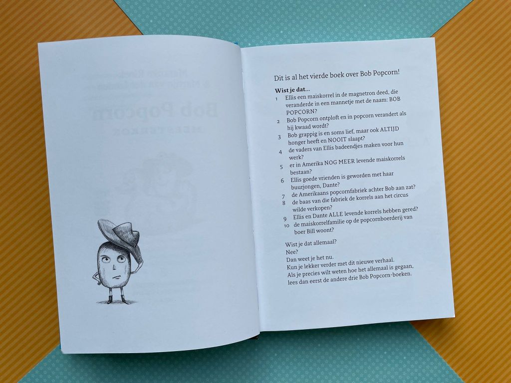 Het personage van Bob is gewoon heerlijk. Hij denkt continu aan eten, is heerlijk eigenwijs en kan ook af en toe heerlijk mopperig (en grappig) uit de hoek komen. En niet alleen ik ben gek op Bob Popcorn. Mijn jongste dochter heeft haar boekenspreekbeurt over deze boeken gehouden, en ook op mijn school merk ik dat steeds meer kinderen én leerkrachten dit kleine figuurtje beginnen te kennen. Bob rules!