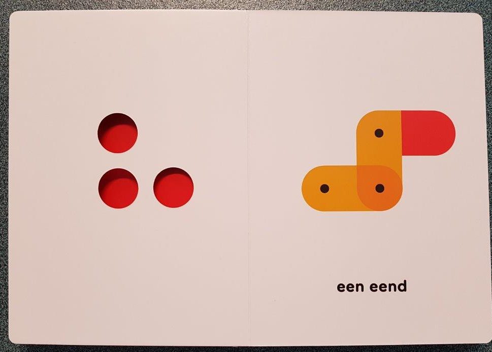 De dieren die in een achter de puntjes verstopt zitten, zijn vragen iets meer van mijn fantasie. Wel heel erg leuk bedacht en een leuke, speelse manier voor kinderen om te leren tellen en de nieuwsgierigheid te wekken wat er achter de puntjes zit. Mijn fantasie komt op gang en ik bedenk me hoe mijn zoontje de puntjes en cijfers uit een boek vol puntjes gaat koppelen aan de getallen in de lift. Eens zien of mijn zoontje straks in de lift “eed” (= eend) gaat roepen als we voorbij de derde verdieping komen! De ezel, wanneer er op de zesde verdieping iemand in- of uitstapt, mag hij wat mij betreft wel overslaan dan…