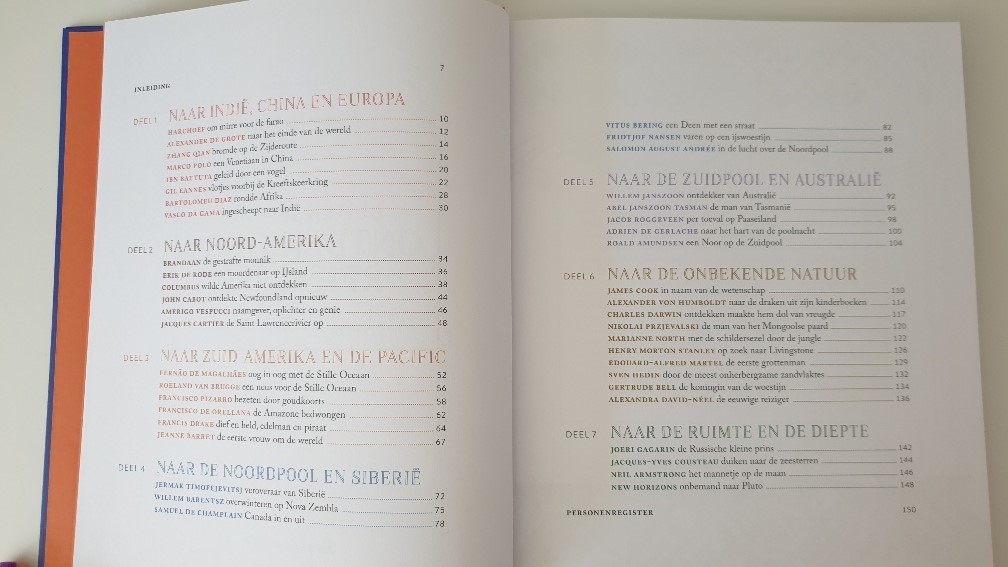 Een ander mooi boek over ontdekkingsreizigers is deze van uitgeverij Lannoo. Waar het vorige boek vooral een museum is aan weetjes en mooie afbeeldingen, is dit boek meer een verhalenboek over de geschiedenis van meer dan 40 ontdekkingsreizigers.