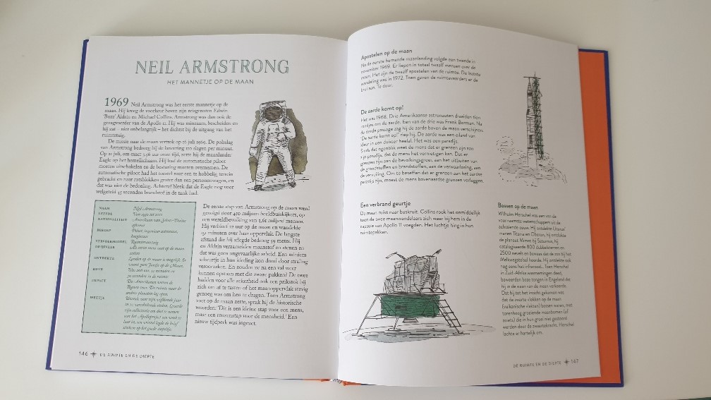 Een boek vol met de kleine feitjes, een stukje geschiedenis over de ontdekkingsreiziger. Met de leuke illustraties is dit boek zeer geschikt voor de middenbouw en bovenbouw. Om neer te zetten op tafel, maar ook om uit voor te lezen. Extra leuk vind ik de extra pagina’s in het boek met leuke weetjes aan boord van de schepen. Per werelddeel staan er ontdekkingsreizigers centraal. Er is ook ruimte voor de onbekende natuur en de ruimte en de diepte met ontdekkingsreizigers als Jacques Cousteau en Neil Armstrong.