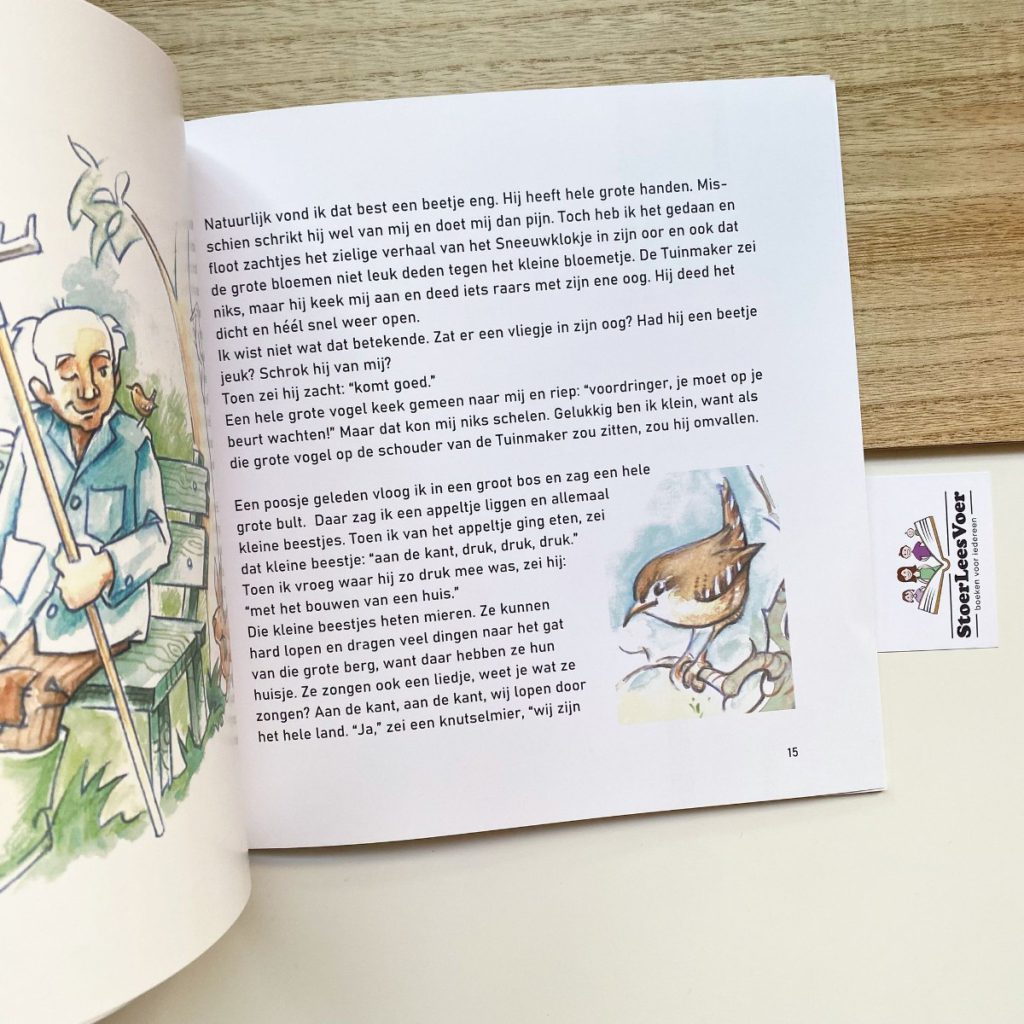 De bloemen plagen Sneeuwklokje, gelukkig weet het Winterkoninkje aan wie hij hulp kan vragen om haar te helpen. Dit boek is lief en vriendelijk. Hans van Rhee heeft prachtige illustraties gemaakt die echt passen bij de sfeer van dit boek. Van den Berg vertelt als opa een verhaal aan zijn kleinkind en dat is ook precies hoe het voelt als je dit leest. Het boek spreekt tegen je, deelt wijsheden en geeft hoop. Een mooi, vriendelijk en hoopvol boekje tussen deze boeken met thema pesten.