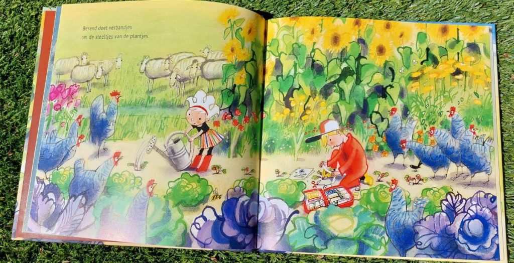 Boer Boris is altijd druk in de weer. Maakt hij zich niet druk om zijn dieren dan is het wel om zijn oogst. In dit boek komen heel wat termen voorbij die horen bij een thema als de moestuin en groeien en bloeien. Met woorden als schoffelen, wieden, water geven, mesten leren kinderen weer nieuwe woorden om hun woordenschat te vergroten. We lezen ook over graan, peen, peultjes en prei. Woorden die de kinderen waarschijnlijk al kennen. Maar och Boer Boris en de bietjes is ook wel een vertederend prentenboek.