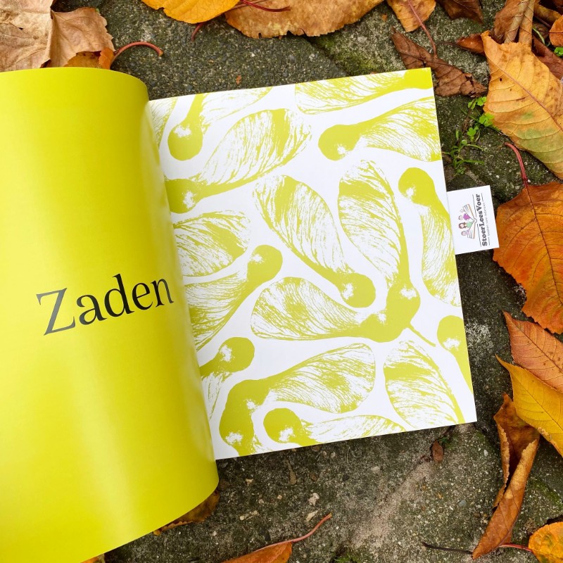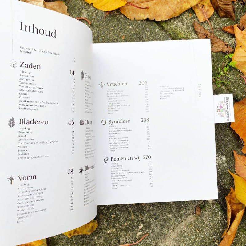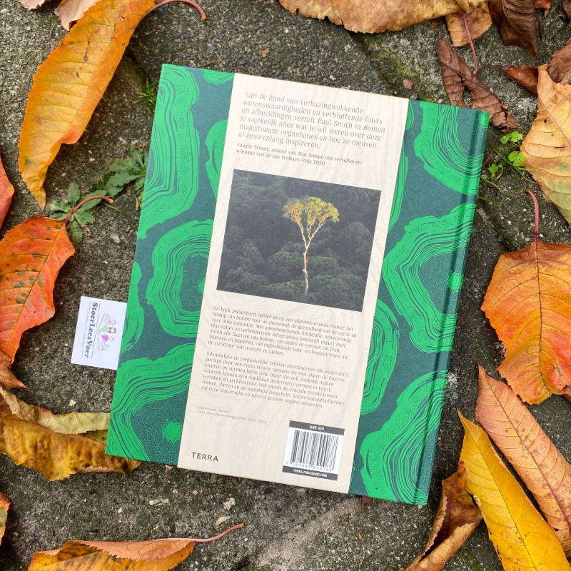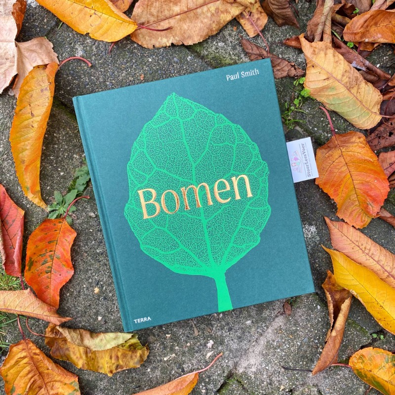 Bomen heeft een prachtige vormgeving, het schutblad zit bijvoorbeeld vol met nerven. Daarnaast is de achterflaptekst op een papieren wikkel gedrukt die om de achterkant heen zit, heel tof! De voorkant maakt gebruik van een prachtig glimmende folietekst. En dit in combinatie met het eenvoudige, maar ingenieuze blad is mooi. Dit boek is een absolute eyecatcher voor op je koffietafel of in je boekenkast. En daarmee ook een goede cadeautip.