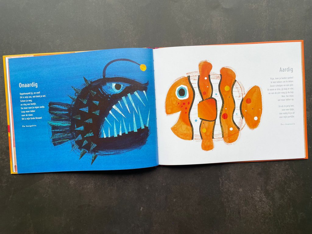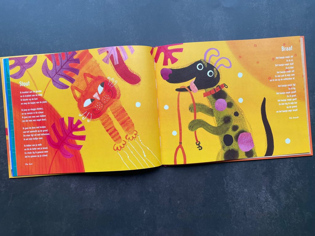 Ook ‘Brave hond, stoute kat’ valt op door de mooie, kleurige tekeningen. Dit boek is echt een lust voor het oog, van de tekeningen wordt je gewoon heel erg vrolijk! De versjes zijn speels en er is geen woord teveel in te vinden. Elk woord wordt gewogen, en je ziet hoe mooi taal kan zijn. De rijm is verrassend, soms net anders dan je het zou verwachten. Hoe mooi is dit stukje bijvoorbeeld: