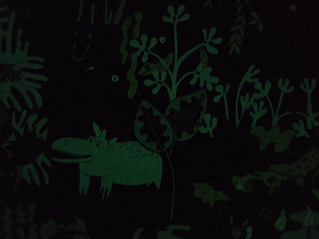 Niet alleen het feit dat dit boek uit te klappen is maakt Dag en nacht in het regenwoud een bijzonder zoekboek. De nachtkant van het boek kan namelijk oplichten in het donker! Je moet het boek een tijdje in het licht leggen of onder een lamp, en dan kun je zien hoe het oerwoud ’s nachts tot leven komt!