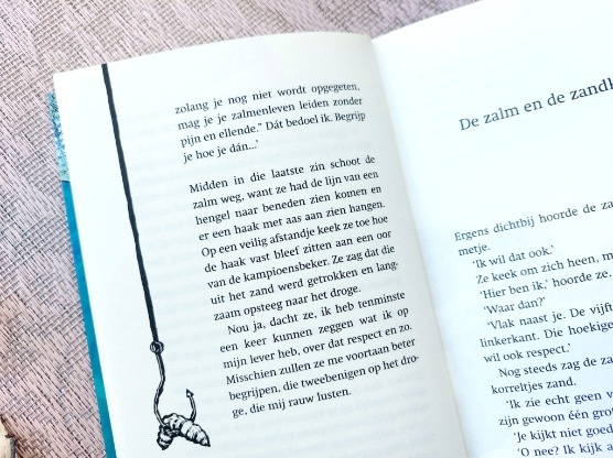 In Dát bedoel ik, zei de zalm worden kleine ontmoetingen vertaald naar wijze lessen. Het is een mooi boek om te lezen samen met kinderen, vanaf ongeveer 7 jaar kan dat al. De kleine illustraties, van de hand van Joke van Leeuwen zelf, geven het verhaal een mooie extra laag en vergroten het voorstellingsvermogen van kinderen. Een verrassend boek dus voor alle filosofische jonge denkers die van alles willen weten en graag vragen stellen!
