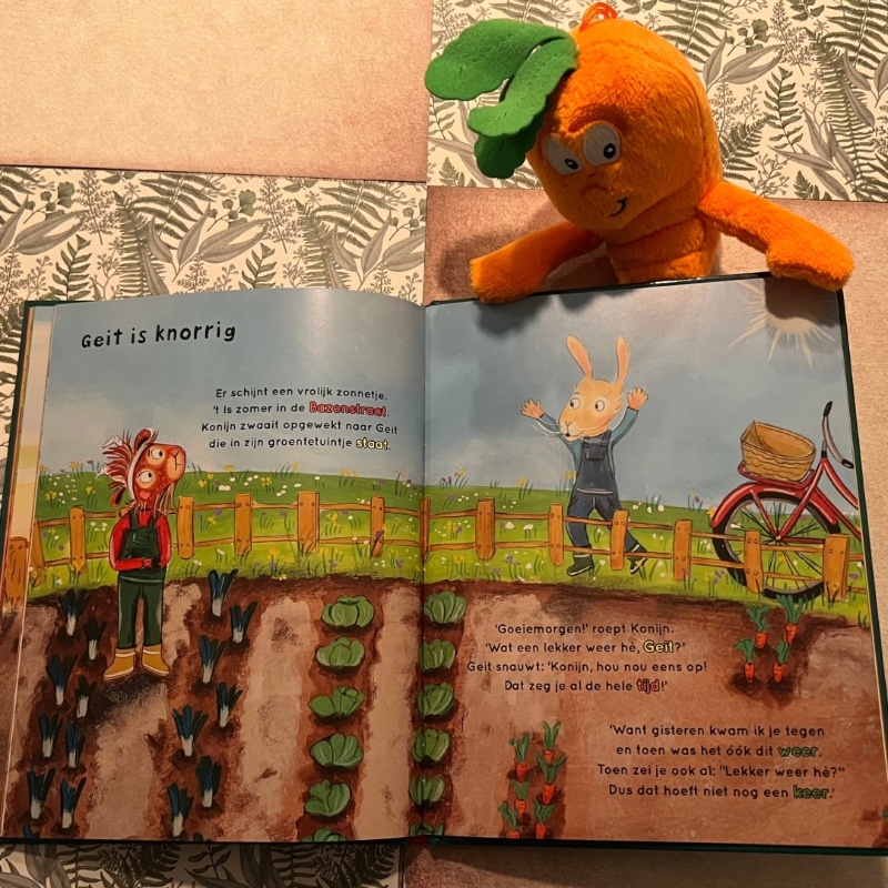 In De Bazenstraat zet de bloemetjes buiten maak je met geit, duif, neushoorn en konijn van alles mee waar ik als juf al vaak vragen over heb gehad. In de winter de vraag: ‘Juf, mag ik zonder jas naar buiten en verontwaardigt zijn als dit niet mag of de vraag ‘juf, hoe werkt dat eigenlijk een eigen moestuin, kan ik het dan echt eten?’. Een gesprek die na een samen leesverhaal zo weer kan op ‘groeien’. Wat mij betreft een echte aanrader voor een heerlijk geluks(lees)momentje samen met je zoon, dochter, kleinkind of leerling op school!