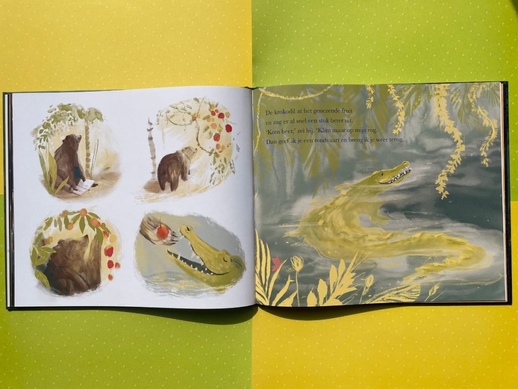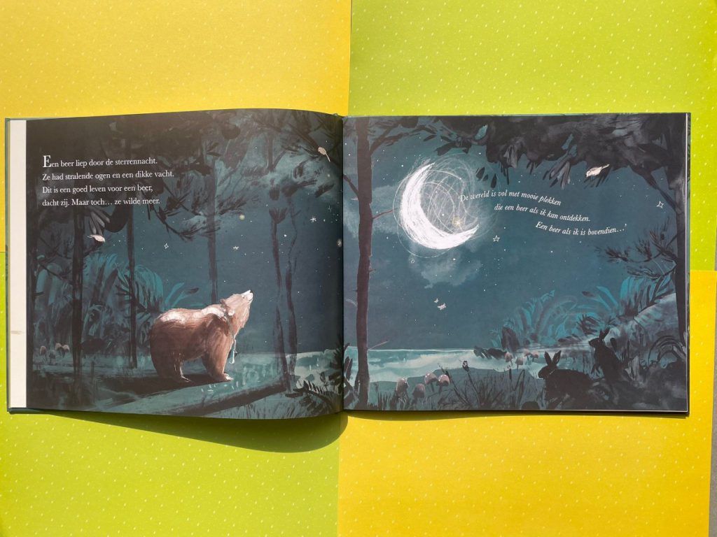 De tekeningen in ‘De beer en haar boek’ zijn ontzettend mooi, bijna magisch. Je gaat samen met beer op ontdekkingstocht naar de mooiste plekjes van de wereld, en je zou gewoon willen dat je hier samen met beer zou kunnen zijn. De mooie sterrennacht, de spannende jungle en de hete woestijn. En de tekst leest fantastisch (voor): de rijm en herhaling zorgen ervoor dat dit boek een succes is!