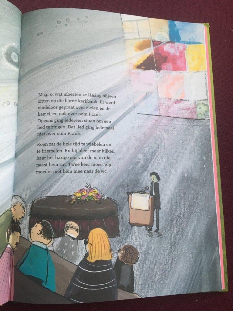 Dat de andere opa en oma ook in de aula zaten. Zo kon Hetty bij hen op schoot zitten mocht ze daar behoefte aan hebben. En we hadden boekjes gelezen als ‘Oma Pluis’ van Dick Bruna om haar voor te bereiden. Ik sloot af met zoiets als: ‘De dood hoort bij het leven, vermijden heeft geen zin.’ Tot mijn grimmige genoegen had ze daar niet van terug.