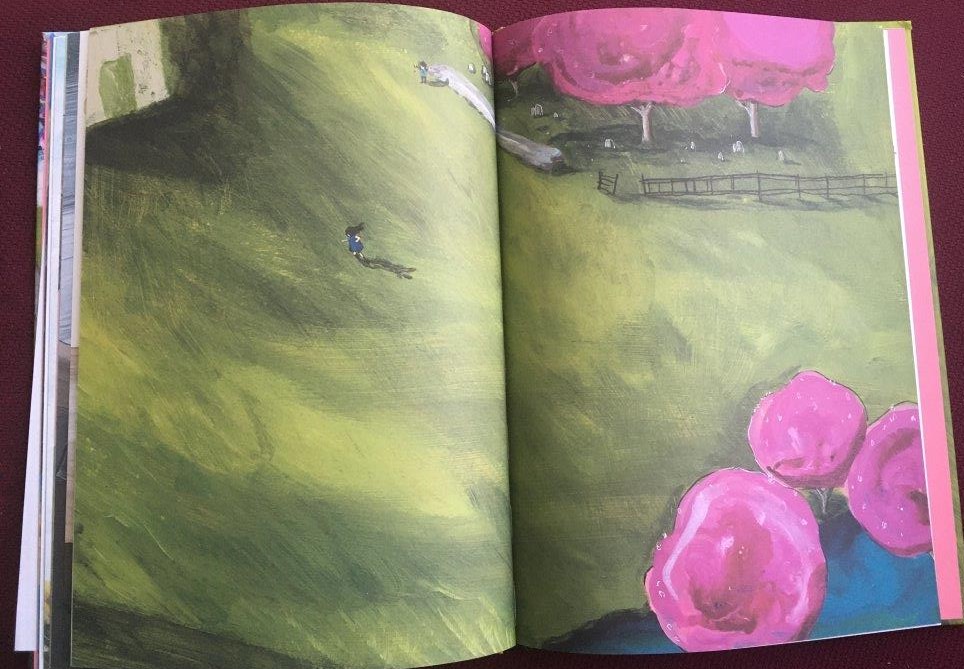 De prenten in ‘De Begrafenis’ zijn geschilderd en geven een rustige sfeer. Op de een of andere manier doen ze heel Engels aan. Misschien komt dat door de kerk die in een heuvellandschap ligt en omgeven is door groene weilanden en bomen in bloei. Het mooie is dat de plechtigheid en de aanloop ernaartoe wordt beschreven, maar nergens het daadwerkelijke begraven.