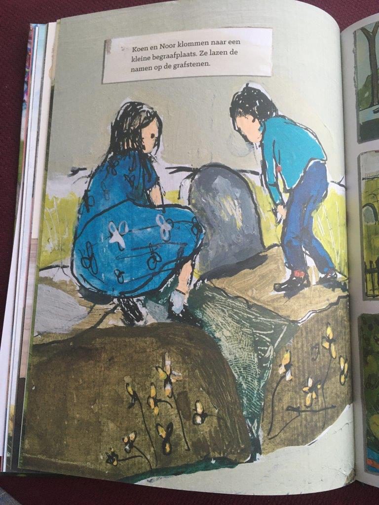 ‘De Begrafenis kan prima gebruikt worden door ouders of verzorgers als een kind meegaat naar een crematie. In de prenten zijn weliswaar grafstenen te zien, een duidelijke verwijzing naar het begraven van mensen, maar het begraven specifiek zien we niet. Wellicht had ik daar zelf wel behoefte aan gehad, dat dat wat duidelijker naar voren was gekomen. Tegelijkertijd vraag ik me af: Hoe breng je dat dan smaakvol in beeld? Want dat moet gezegd, ‘De Begrafenis’ is een ingetogen en smaakvol prentenboek dat niet voor niets door The New York Times is getipt als één van de beste boeken van 2018.