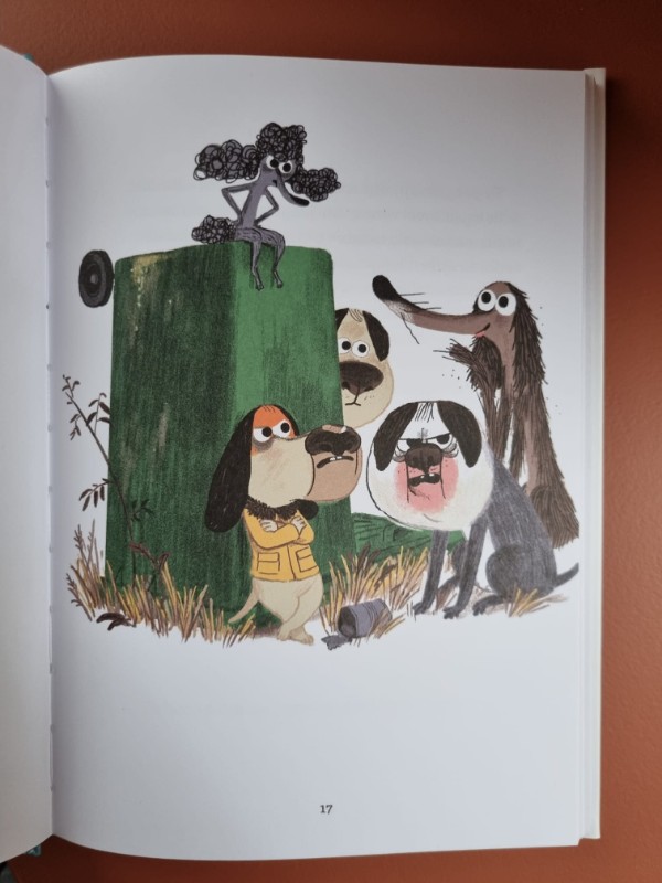 Wat ik ontzettend leuk vind aan alle Stinkhond boeken zijn de illustraties. Die blijven onverminderd goed. Grappig, gedetailleerd waar het moet en kleurrijk. De cover van de boeken in deze serie is zeer onderscheidend, je ziet goed dat ze bij elkaar horen. Wit, met een gekleurde band bij de rug en het typerende lettertype.