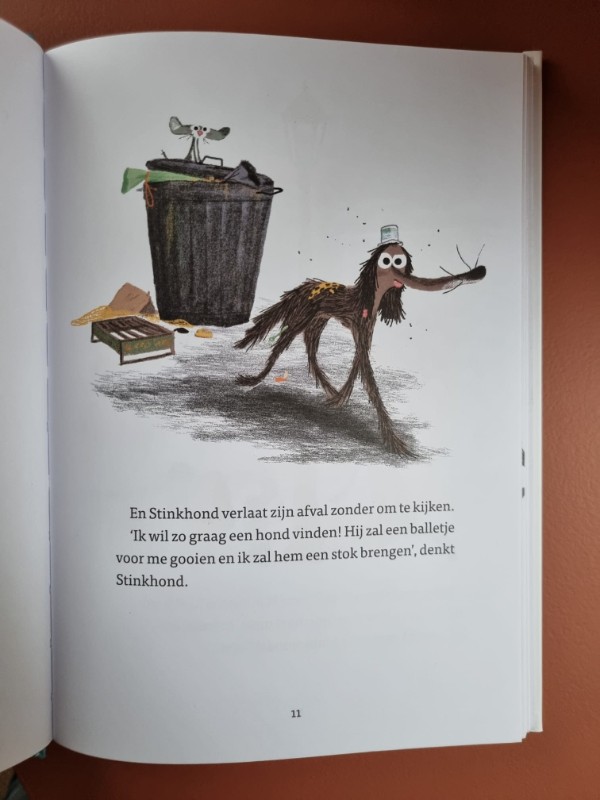 Ik vind De bende van Stinkhond dan ook vooral geschikt om zelf te lezen vanaf 8 jaar. Om voor te lezen zal het niet bij alle jongere kinderen aanslaan. Het boek is gemaakt voor kinderen vanaf 5 jaar, maar mijn zoon van deze leeftijd vond het best ingewikkeld. Er worden aardig wat uitdrukkingen gebruikt, waarbij het grappig is dat Stinkhond deze zelf niet goed oppikt. Hij neemt het vaak letterlijk, terwijl het figuurlijk wordt bedoeld. Ook lijkt Stinkhond niet alles goed te horen wat er wordt gezegd, waardoor ook wat spraakverwarringen voorkomen. Ook als volwassene vermakelijk om te lezen.