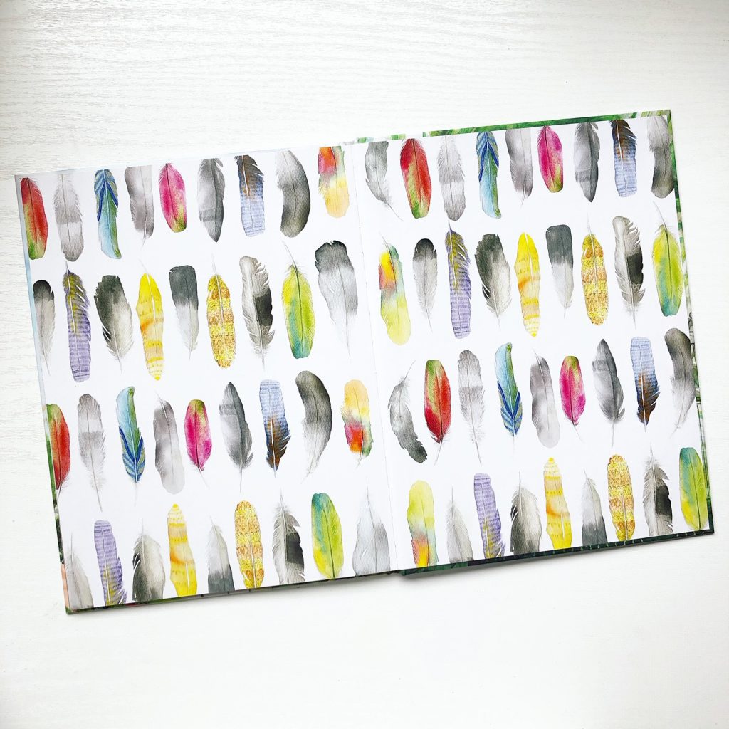 Mijn dochters vinden de prachtig gekleurde veren op de schutbladeren van De bijzondere duif al prachtig. We blijven hier best even in hangen want er is zoveel moois te zien. Het inspireert ons tot kiezen van een favoriet. Maar ook bedenken we allemaal verhalen van bij wie een bepaalde veer zou kunnen horen.