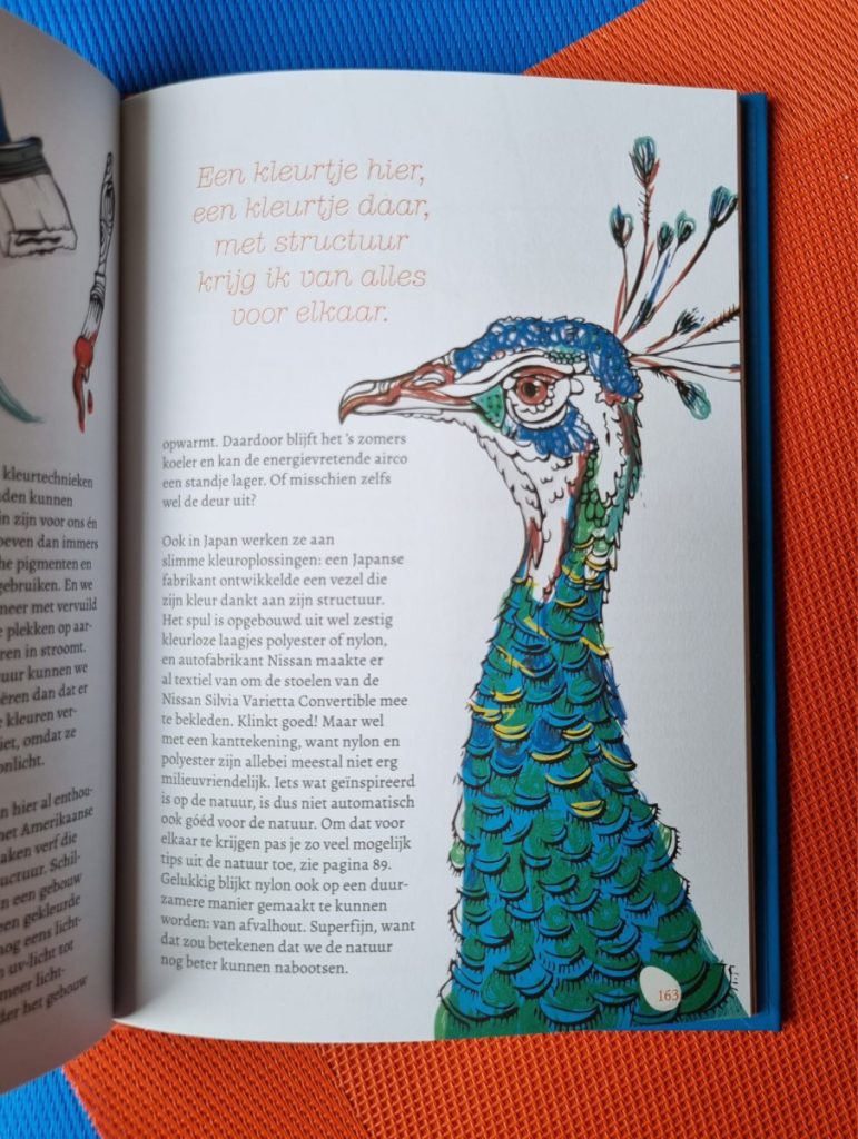 Het liefst zou ik je alle bladzijdes uit De bionische vogel willen laten zien. Het is namelijk zo intrigerend en inspirerend. De inhoud, maar ook de illustraties en de vormgeving. Vormgever en illustrator Margot Westerman maakte deze. Ik herken haar stijl van De Zweetvoetenman. Een fantastisch non-fictieboek voor kinderen, dat prijzen wonnen vanwege de originele insteek.