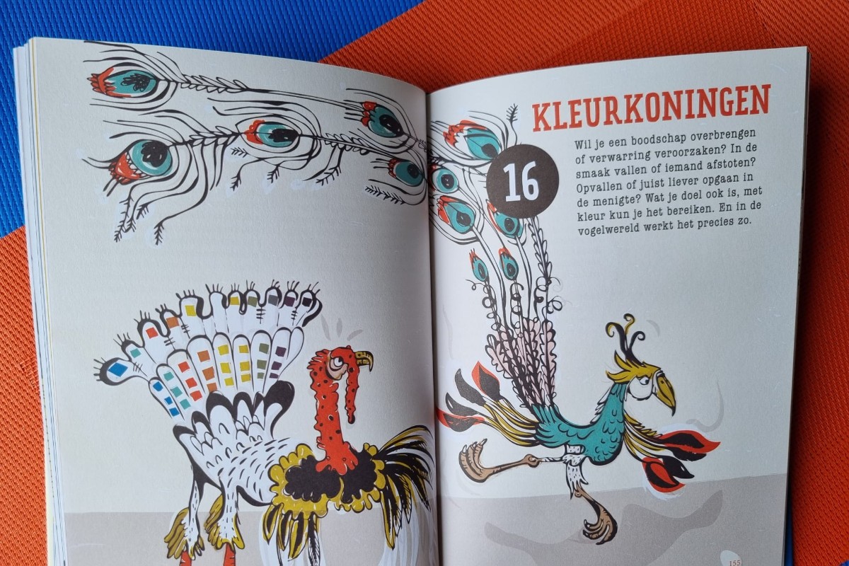 In bovenstaande afbeeldingen kun je zien hoe een hoofdstuk in De bionische vogel er uit ziet. Gelukkig is er een inhoudsopgave en een fantastisch handig ingedeeld register (ja je leest het…ik ben enthousiast. Dan ga ik smijten met superlatieven). Kleurrijk, grappig, mooie vormgeving en lettertypekeuzes. Maar vooral ongelooflijk informatief. Ik heb echt heel veel geleerd van dit boek, terwijl ik inmiddels al best wat boeken heb mogen lezen voor StoerLeesVoer over dieren.