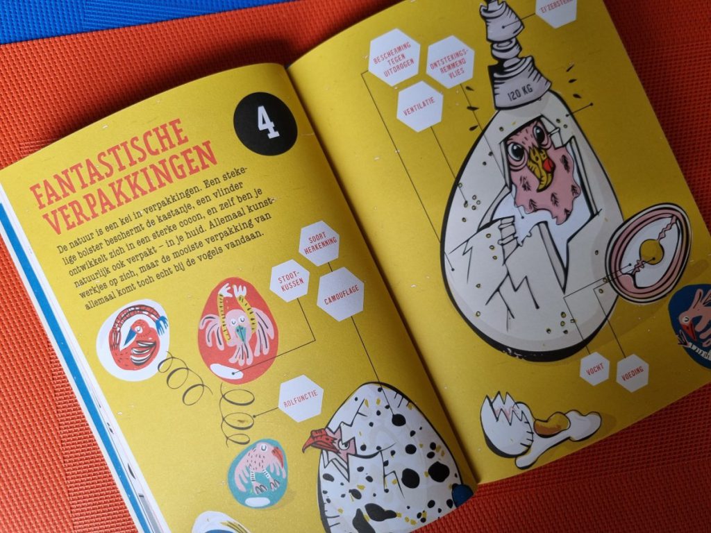 Daarna gaan we door naar de gevleugelde uitvinders. Door middel van de verschillende eigenschappen van vogels wordt in De bionische vogel uitgelegd op welke wijze we kunnen leren van deze dieren. Praktische poten, droog blijven in het water, stilhangen in de lucht, weefwonderen. Van alles komt voorbij. Steeds wordt de koppeling gelegd naar de mensenwereld. Van vogel naar brug, van vleugels naar vliegtuigen, van poten naar sneakers. Op deze manier begint mijn brein al een beetje te denken in oplossingen die wij zouden kunnen inzetten. Een leuk proces en ook goed gedaan van de auteur dat deze oplossingen nog niet hapklaar worden gepresenteerd.