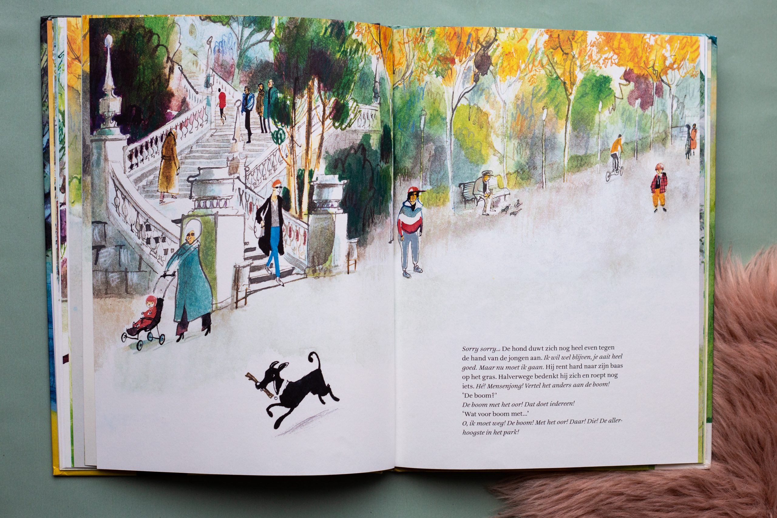 Alle dieren weten het maar geen enkel mens weet het. In het park staat een hele grote boom. Een bijzondere boom. Een boom met halverwege in de stam een oor. Niet zomaar een oor, nee een oor dat echt luistert.
