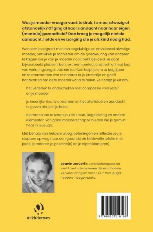 De Amerikaanse auteur Jasmin Lee Cori is psychotherapeute en werkt met volwassenen die emotionele verwaarlozing en misbruik in hun jeugd hebben meegemaakt. In het boek worden ook korte praktijkvoorbeelden beschreven rondom de emotioneel afwezige moeder. Dat helpt bij het begrijpen van deze indringende problematiek.