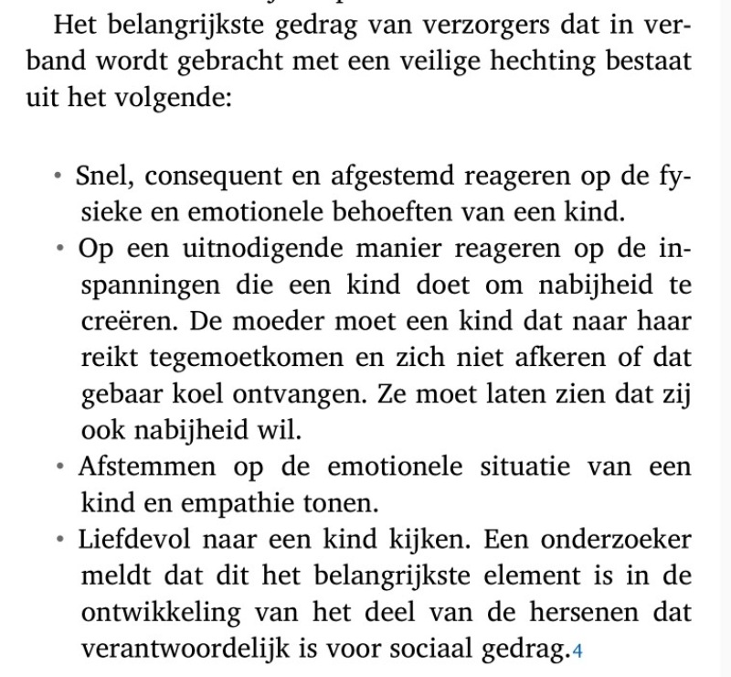 Het belang van de emotionele en stabiele aanwezigheid richting je kind, dat is een sterke boodschap die je mee kunt nemen uit dit boek. Er echt met je aandacht bij zijn in een 1-op-1 situatie. Niet steeds je telefoon erbij pakken. Niet eindeloos foto’s maken tijdens een mooie gebeurtenis. Maar je kind laten voelen dat je hen echt ziet. Dat ze zich veilig voelen, en naar je toe komen bij moeilijkheden. Omdat ze weten dat je er emotioneel voor ze bent.