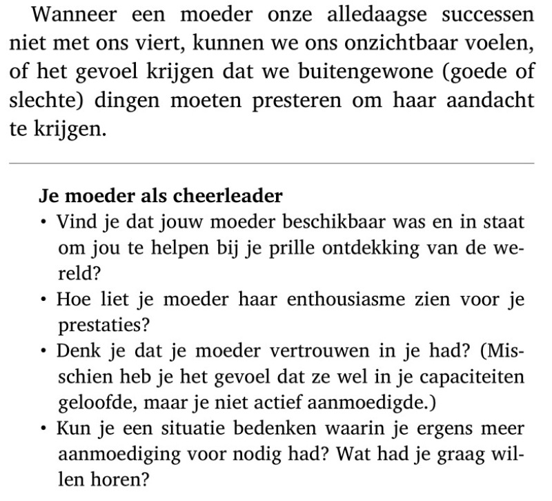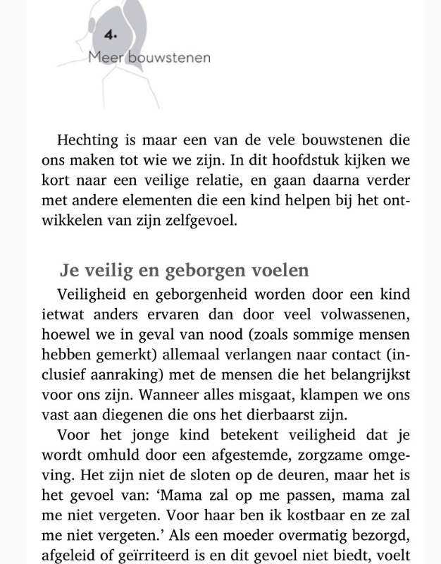 Dit boek is heel informatief en helpend. Maar het is ook wel confronterend. Zeker in het eerste deel waarin aan bod komt wat kinderen nodig hebben, en wat de effecten zijn van onvoldoende gehecht zijn bijvoorbeeld. De auteur benoemt ook dat het eerste deel van het boek bij sommigen te veel binnenkomt, en ze daardoor het boek weg moeten leggen. Want een gemis ervaren van een diepe connectie en emotionele band met je moeder, kan een groot pijnpunt zijn. Of als je voelt dat je zelf soms tekortschiet als moeder naar je eigen kind. Maar gelukkig is er verder in het boek ook aandacht voor herstel. Dus doorlezen loont.