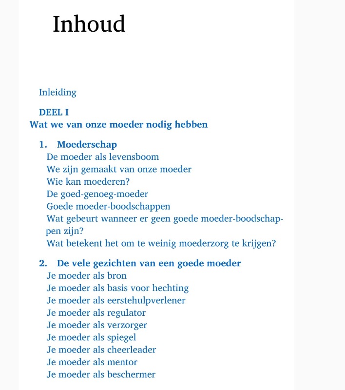 - Deel 1: Wat we van onze moeder nodig hebben. Over de taken van een moeder en de hechting als eerste fundament