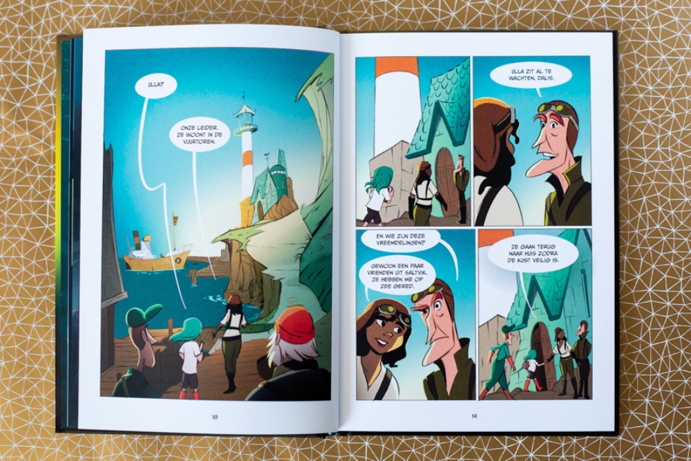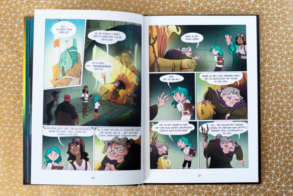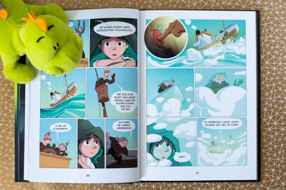 Zoals ik al eerder aangaf is de ijsmist op zich prima te lezen. Je hebt alleen het gevoel dat je midden in een boek begint. Onze dochter had de eerste drie delen op haar kamer dus die heb ik alsnog gelezen. Zo is het verhaal een stuk completer. In Op open zee gaat Orelia voor school op een soort stage. Haar pleegouders denken dat ze die stage in het aquarium van Statvik loopt. En dat is helemaal niet zo, Orelia is dan al in Krypto. Vandaar dat De ijsmist wat verwarrend begon voor mij.