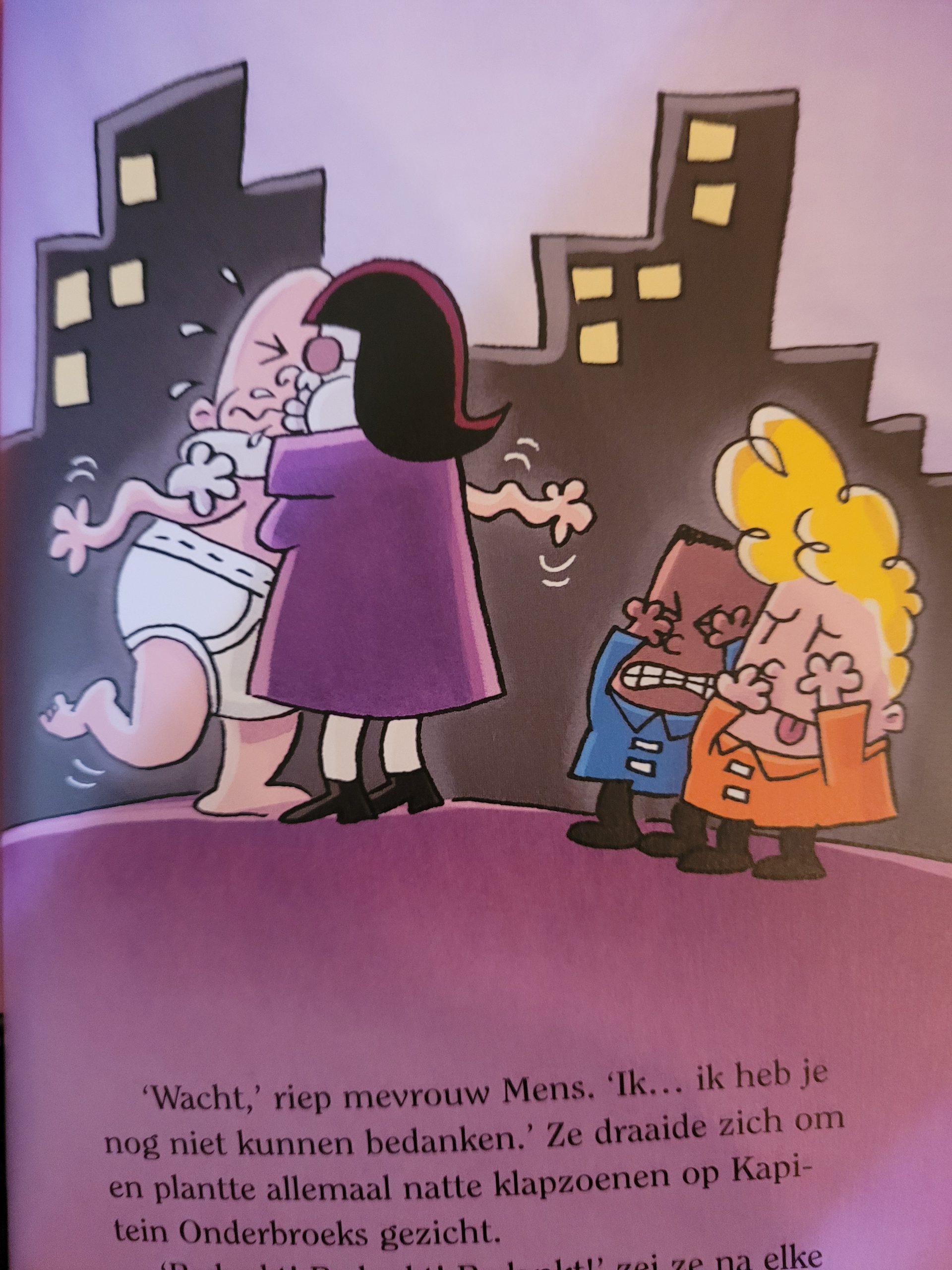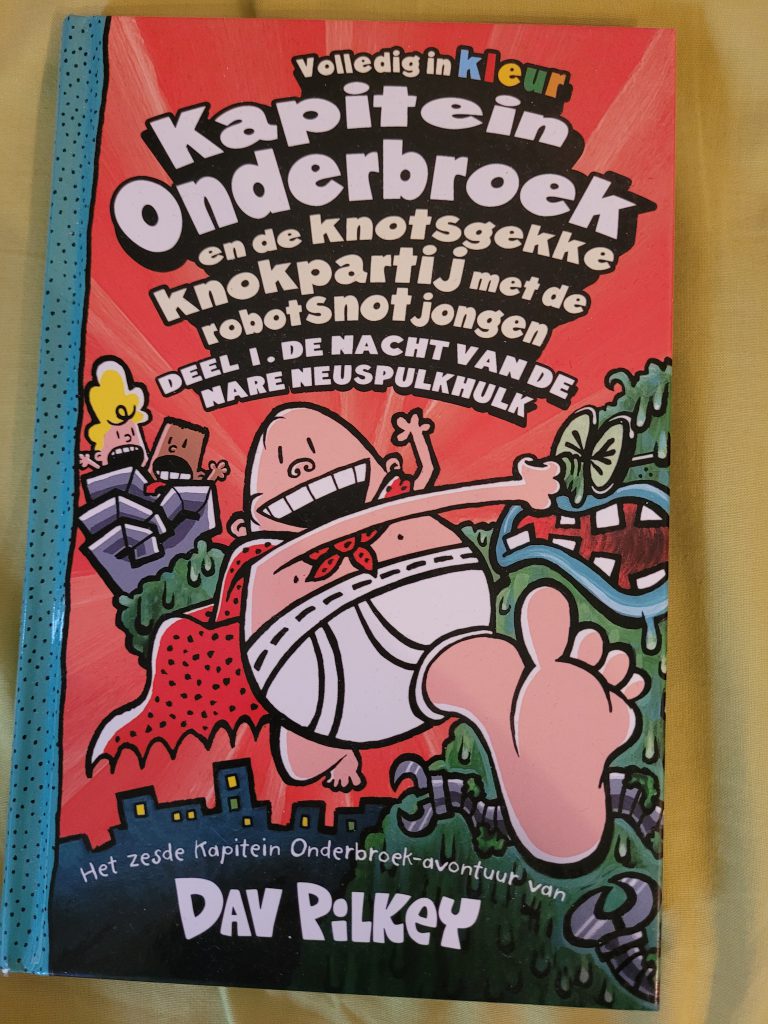 Net zoals elk verhaal van Kapitein Onderbroek heeft een knotsgekke knokpartij een knotsgek verhaal. Een verhaal vol met grappige grapjes, scheten, overgeven en schattigheid😻. Ik kan niet geloven hoe grappig en chaotisch het kan zijn. Ik vind dat Pilkey hier erg goed in is. In de serie Dog Man zie je ook dit soort chaos. Maar ondanks alle chaos en idioot leuke grappen blijft Dav Pilkey mijn favoriete auteur en illustrator. En natuurlijk ook van mijn twee nichtjes👶👶. Ook nu in het boek van de knotsgekke knokpartij Dit verhaal is knotsgek, niet alleen door alle uitvindingen die Melvin maakt, maar ook door de idiote opmerkingen die sommige personen maken. Melvin: ‘Ik ga voor eens en altijd wraak nemen op Sjors en Harold!’