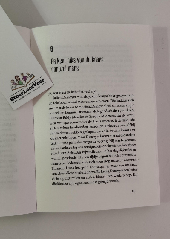 Met deze woorden op de backflap van De koers is mijn aandacht zeker getrokken. Het wielrenwereldje heeft een speciaal plekje in mijn (niet zo gevarieerde) sporthart. Mijn opa was en mijn vader is een groot wielerfan. Ik kan wel zeggen dat ik de liefde voor het kijken naar de wielersport van hen heb overgekregen. Ik vind de sport zelf er geweldig uitzien, al zul je mij nooit op een wielrenfiets zien. De banden zijn mij iets te dun en dat zadel..
