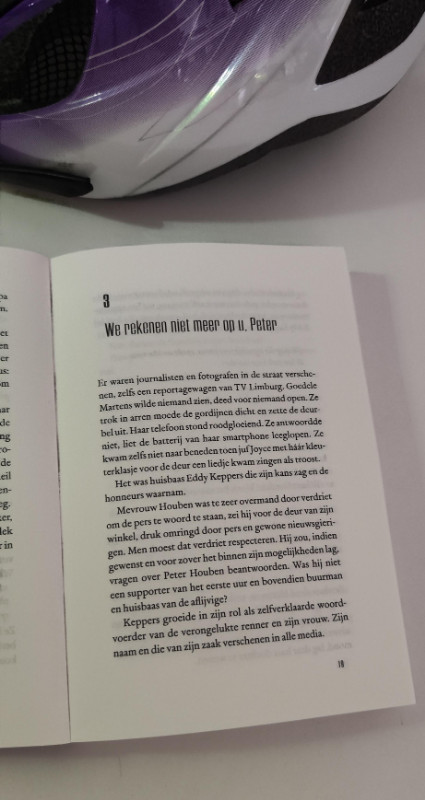 Na deze zinderende eindsprint ga ik naar het volgende hoofdstuk en leer ik Goedele kennen, de weduwe van Peter Houben. Hij is een startende prof renner. Hij heeft tot nu toe vooral gereden bij de geloften. Dat zijn de renners die de amateurs aan het ontgroeien zijn en richting de profs gaan. De weg is niet makkelijk; de echte prof wedstrijden zijn toch wel wat harder en heftiger dan verwacht. Rondes van meerdere dagen zijn sowieso van een heel ander kaliber dan de eendagsrondes.
