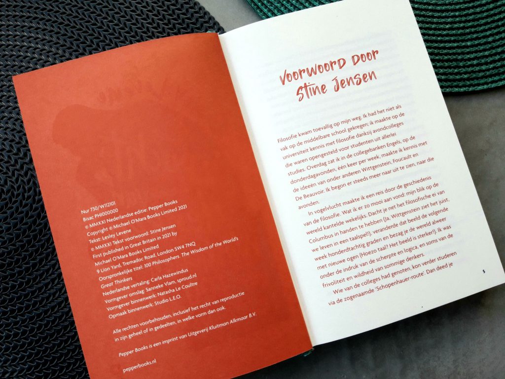 Een leerzame en waardevolle les, die ook in onze tijd natuurlijk nog van toepassing is. Zo biedt dit boek je als lezer steeds een mooi citaat van een beroemde filosoof. Niet altijd wordt de achterliggende gedachte van de uitspraak toegelicht. Maar we lezen wel een beknopte achtergrond van de betreffende filosoof en bijvoorbeeld de belangrijkste werken. Door auteur Lesley Levene wordt zo een prettige introductie geboden in de wereld van de filosofie.