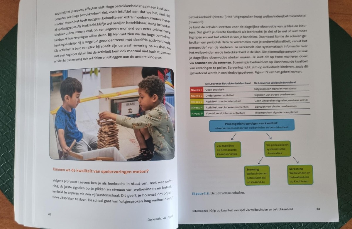 Naast de hoofdstukken zijn er intermezzo’s opgenomen in De kracht van spel. Drie specifieke onderwerpen komen aan bod, die in ieder geval in de praktijk bij mij op school heel direct ingezet kunnen worden! In het eerste intermezzo wordt ingegaan op welbevinden en betrokkenheid. Hoe observeer je spel en ook wat kun jij aan de hand van die observatie doen?