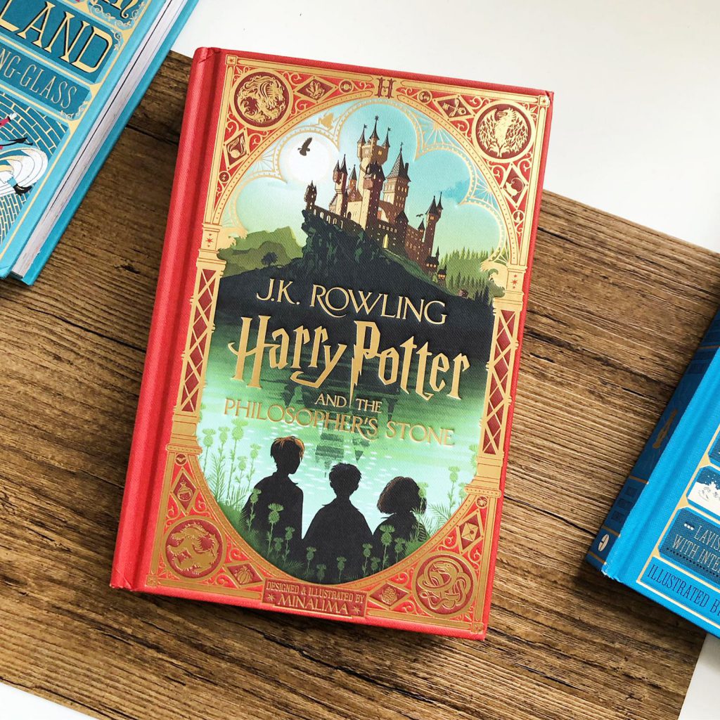 En dan hebben we mijn derde aanwinst nog in de mooiste boeken ooit. Deel 1 van de Harry Potter reeks. Uit handen van de 2 mensen die hele sfeer van die wereld in film hebben gecreëerd. Ik heb laatst met heel veel pijn in mijn hart de gehele Harry Potter reeks moeten weggooien. Ik heb niet doorgehad dat er vocht en zilvervisjes actief waren. Maar dit boek maakt mijn verdriet weer goed. Dit is hoe je Harry Potter wilt lezen en ervaren. Geheel in stijl met de andere boeken uit de Minalima reeks, maar geheel ook een eigen uitstraling.