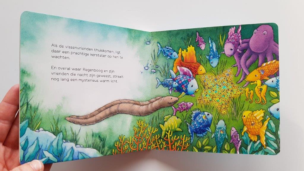 Daarna zwemmen de vrienden langs Octopus, omdat sommige vissen het zielig vinden dat hij altijd alleen in zijn grot zit. Octopus denkt op zijn beurt dat Murene hun gezelschap wat beter kan gebruiken. En nadat Regenboog en zijn vriendjes haar prettige kerstdagen hebben gewenst, klinkt ze inderdaad al niet zo knorrig meer. Een zeepaardje dat ze onderweg naar huis tegenkomen begint te stralen wanneer ze het een vrolijk kerstfeest wensen.