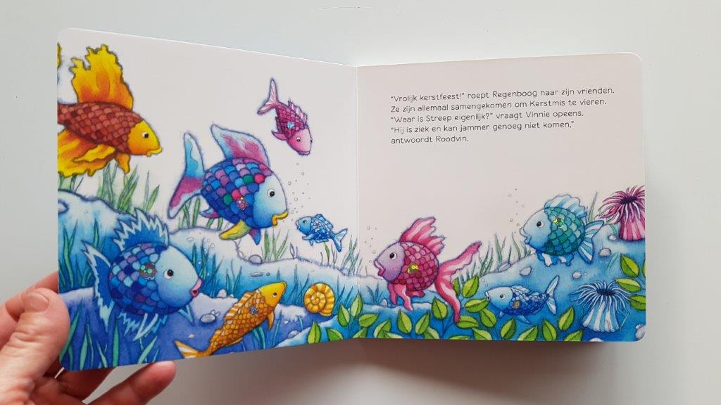 Maar de mooiste vis van de zee viert Kerst dit keer. Samen met zijn vrienden. Tenminste, dat zijn ze van plan. Totdat Vinnie zich opeens afvraagt waar Streep eigenlijk is. Streep is helaas ziek en kon daardoor niet komen. Dat is sneu. Regenboog bedenkt een plan: ze zwemmen samen naar Streep om hem een vrolijk kerstfeest, en natuurlijk beterschap, te wensen.