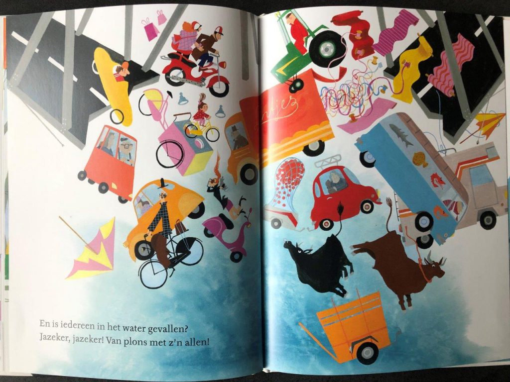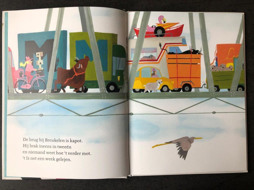 De mug op de brug is een vrolijk en komisch kort verhaal met een treurig einde voor de mug. Een verhaal dat ritme heeft en als een dansje over de tong vloeit. Zo komen de woorden uit je mond, zoals misschien ook de pen van Annie M.G. Schmidt dat ooit heeft gedaan. Simpel, maar doeltreffend. Een kort verhaal in dichtvorm over een mug die op de toch al overvolle brug van Breukelen neerstrijkt waardoor de brug in tweeën breekt. Voertuigen, mensen en dieren, ze vallen allemaal in het water. Iedereen overleeft het gelukkig. Behalve… ? De mug uiteraard. Dit alles met mooie en grappige illustraties van Noëlle Smit. Een verhaal geïllustreerd door de ogen van een kind. Prachtig.