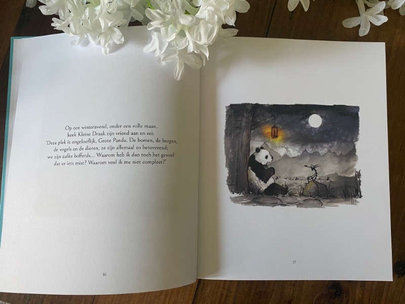 In De reis van Grote Panda en Kleine Draak kwamen voor mij veel herkenbare situaties voor. Niet zozeer de avonturen zoals op een vlot zitten, maar de interne worsteling van Kleine Draak. Zo voelt Kleine Draak zich soms niet compleet, ondanks de prachtige natuur, en is loslaten lastig. Steeds volgend op moeilijkheden volgt wijsheid. Zo kan imperfectie ook iets moois opleveren. En als iets niet te veranderen is, kan aanvaarding helpen. En bij vervelende gevoelens is opmerkzaamheid belangrijk. Al die wijsheden weten we deels vaak wel, maar de manier waarop het boek het brengt kan toch net dat duwtje geven om het te integreren in je eigen leven. Zeker omdat het boek De reis van Grote Panda zo lief en niet oordelend is. Dan zijn dingen soms makkelijker aan te nemen dan dat iemand het tegen je zegt.