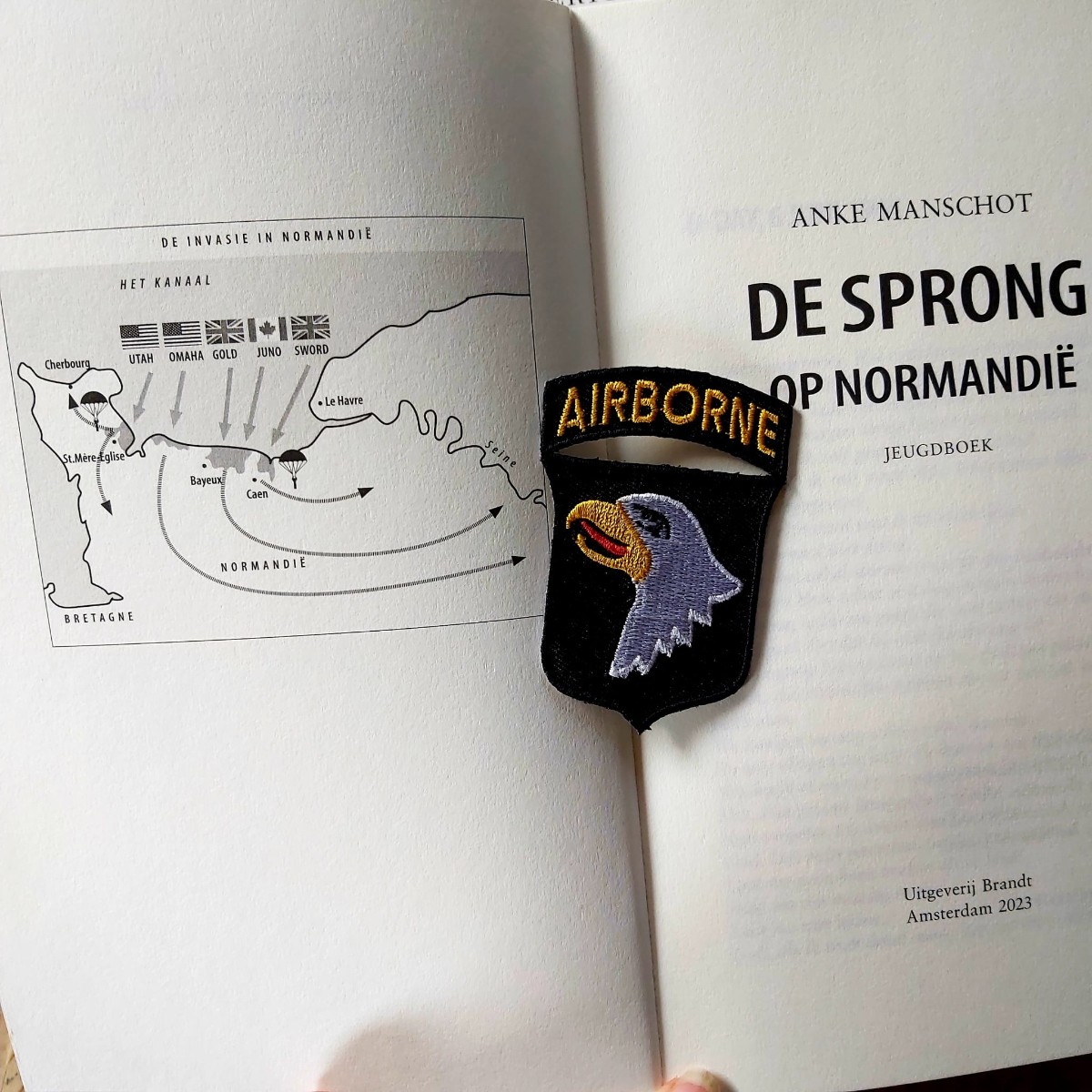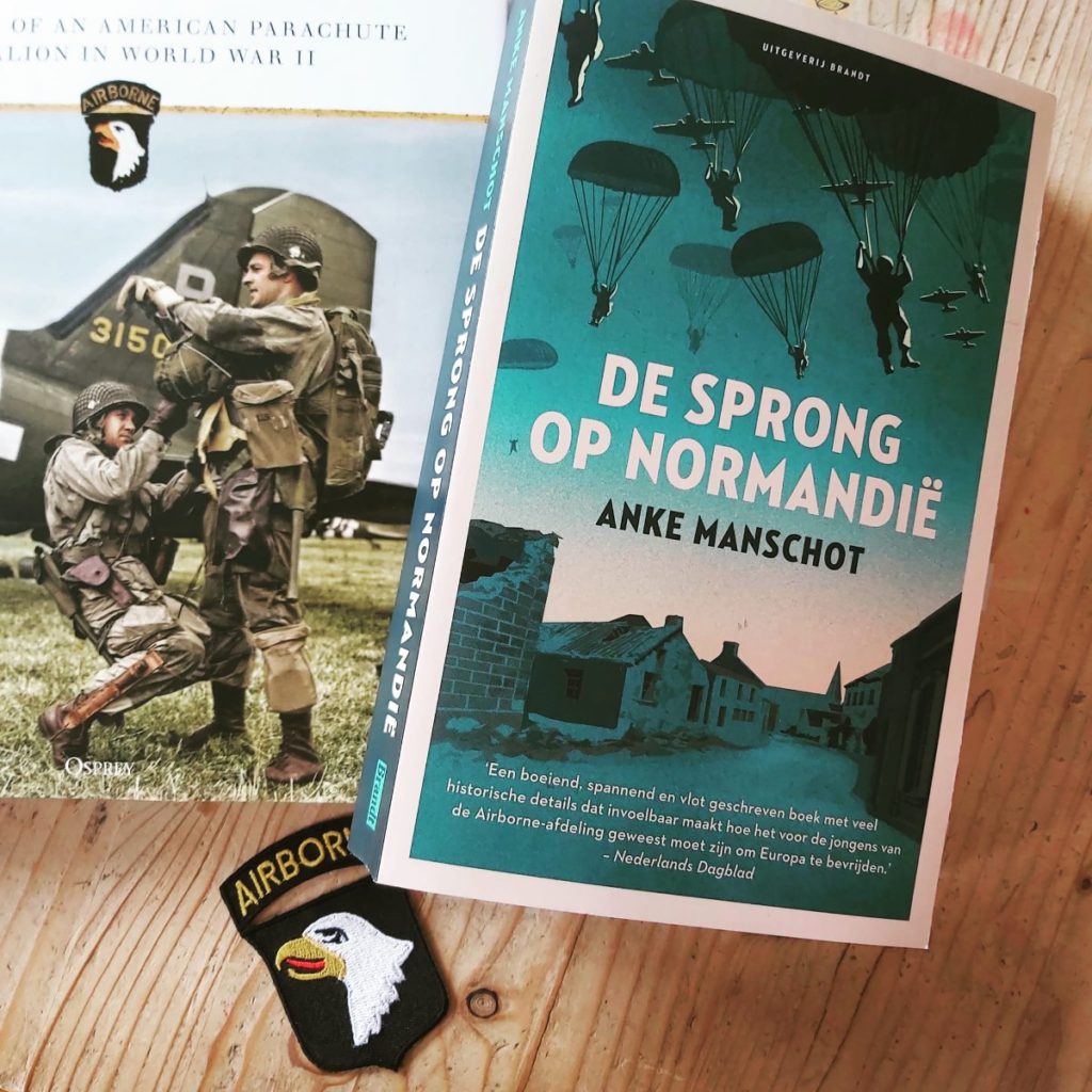 Het blijft me dan ook elke weer verbazen dat er wel weer nieuwe verhalen blijven komen waar weer iets uit te leren valt. Zo kwam ik in aanraking met het boek ‘De sprong op Normandië’ van auteur Anke Manschot. Een verhaal over de belevenissen van de jonge parachutisten van de Amerikaans Airborne- afdeling. Zij zijn het die in de nacht van D-Day uit vliegtuigen sprongen en vooruitgaan in de linies om zo mee te helpen met het bevrijden van Europa. Een boek voor jongeren, vanaf 12 jaar, die de lezers geboeid houdt over een onderwerp van al zo lang geleden, lukt dat nog wel?