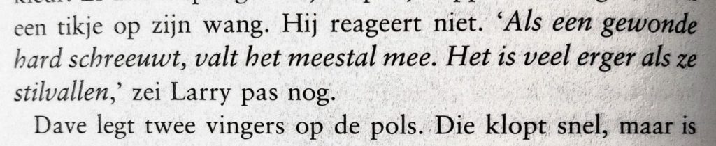 Als een gewonde hard schreeuwt, valt het meestal mee. Het is veel erger als ze stilvallen.
