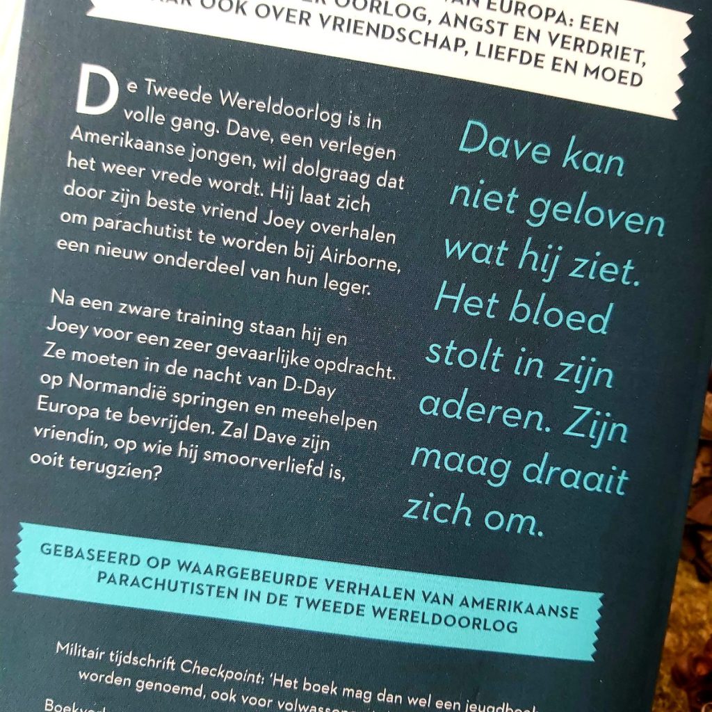 Het boek ‘De sprong op Normandië’ is niet alleen aanbevolen leesvoer voor jeugd vanaf 12 jaar. Ik zou het zelf volwassen ook aanraden. Je krijgt namelijk, zonder belering of te veel aan geschiedkundige informatie, een heel precies beeld over hoe het voor die jonge jongens geweest moet zijn. Van de een op andere dag werden ze weggerukt uit hun veilige en stabiele omgeving. En werden ze vervoerd naar de hel op aarde om te strijden voor de vrijheid die ze zelf nog amper geleefd hadden.