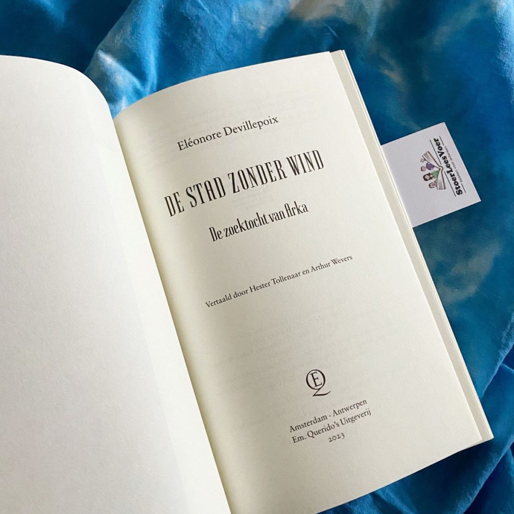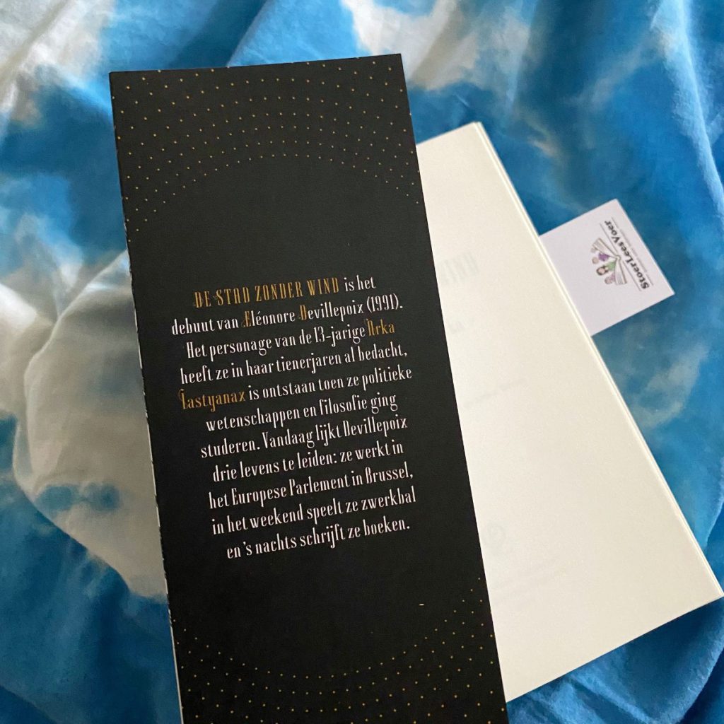 Dit boek heeft mij al vanaf de coveromslag weten te betoveren. Tel daarbij de boeiende titel en de prikkelende namen, auteur Eléonore Devillepoix en ondertitel ‘Zoektocht van Arka’, maar bij op. De stad zonder wind is een jeugd fantasie-epos vanaf ongeveer 10 jaar. Als je even wilt ontsnappen aan de realiteit dan is dit jouw boek. Het zit bomvol avontuur, personages, maatschappelijke kwesties, intriges en aangename prikkelingen. De hoofdpersonen zijn 13 (meisje Arka) en 19 jaar (jongen Lastyanax), dus ook voor oudere lezers is dit een interessant boek. Mijn leeservaring was bijzonder en ik neem jullie graag mee op mijn leesreis.