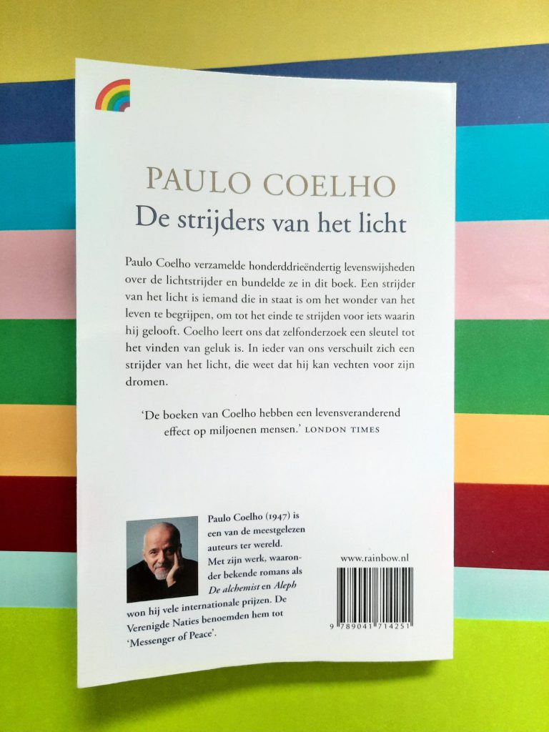 Andere teksten in De strijders van het licht gaan meer echt over een strijd tussen mensen onderling of tussen goed en kwaad. En hoe je je daar uit kunt ontworstelen. Ik vind dat zelf lastiger: daar lijkt meer oordeel in te zetten en dan klinken de strijders beter dan andere mensen. Of ik snap de boodschap van die wijsheden nog niet goed, dat kan ook. Soms zijn de teksten best filosofisch en symbolisch, dus dat gaat het echt om je eigen begrip en interpretatie ervan. Al met al een mooi boek om inspiratie uit op te doen, zeker voor de fans van Coelho’s boeken.