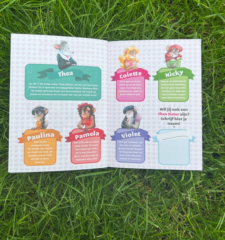 Na vandaag wordt daar De verborgen tuin van Thea Stilton aan toegevoegd. In de boekenreeks gaat het over een meidengroep genaamd: TheaSisters. Zij maken allerlei verschillende avonturen mee. Dit kan op hun college Topford zijn of ergens anders op Walviseiland. Ieder personage staat voor zichzelf en kan herkenning bij kinderen oproepen. Hierdoor worden de verhalen, vind ik, extra bijzonder omdat je er als kind nog beter in kunt verplaatsen of zelfs herkennen. En vervolgens hier een eventuele les uit kunnen trekken hoe één van de TheaSisters het aanpakt.