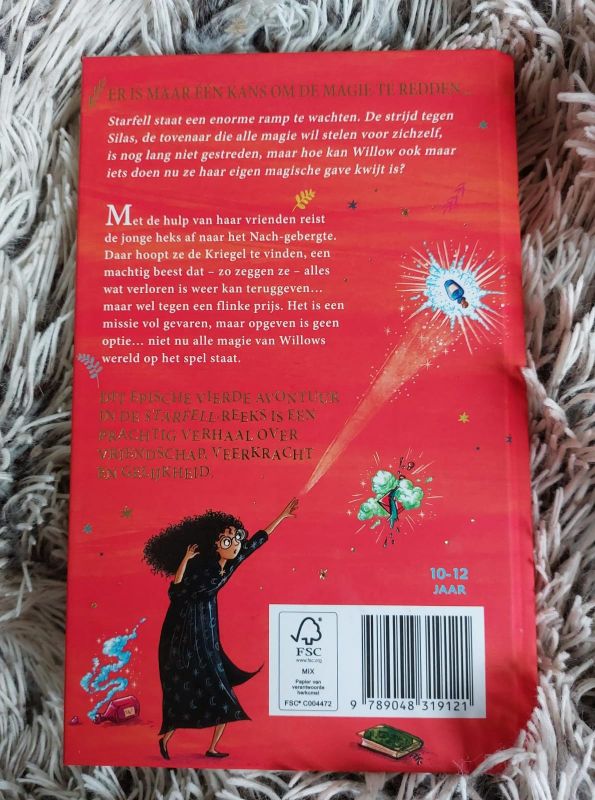 Er is maar één kans om de verdwenen magie te redden… Starfell staat een enorme ramp te wachten. De strijd tegen Silas, de tovenaar die alle magie wil stelen voor zichzelf, is nog lang niet gestreden, maar hoe kan Willow ook maar iets doen nu ze haar eigen magische gave kwijt is? Met de hulp van haar vrienden reist de jonge heks af naar het Nach-gebergte. Daar hoopt ze de Kriegel te vinden, een machtig beest van wie wordt beweerd dat hij alles wat verloren is kan teruggeven… maar wel tegen een flinke prijs. Het is een missie vol gevaren, maar opgeven is geen optie… niet nu alle magie van Willows wereld op het spel staat. Dit epische vierde avontuur in de Starfell-reeks is een prachtig verhaal over vriendschap, veerkracht en gelijkheid.