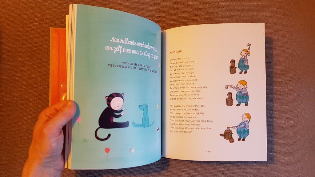 Het laatste hoofdstuk van het boek, aanvullende verhaalversjes om zelf mee aan de slag te gaan, staat niet op de DVD. Maar veel gebaren komen terug uit de voorgaande vingerspelletjes en versjes. Als je er ‘even’ de tijd voor neemt, dan zal je ze zo uit je mouw kunnen schudden!