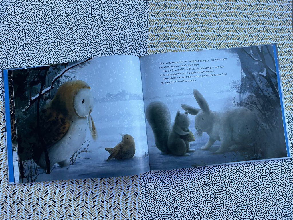Gelukkig willen de dieren die aan de kou gewend zijn de nachtegaal helpen om te overleven, terwijl haar vleugel geneest. De winter is zwaar en soms zelfs een beetje eng, maar de nachtegaal ontdekt dat de wereld ook mooi kan zijn als het heel slecht weer is, en dat de lente altijd terugkomt. Lees het in de wintervogel.