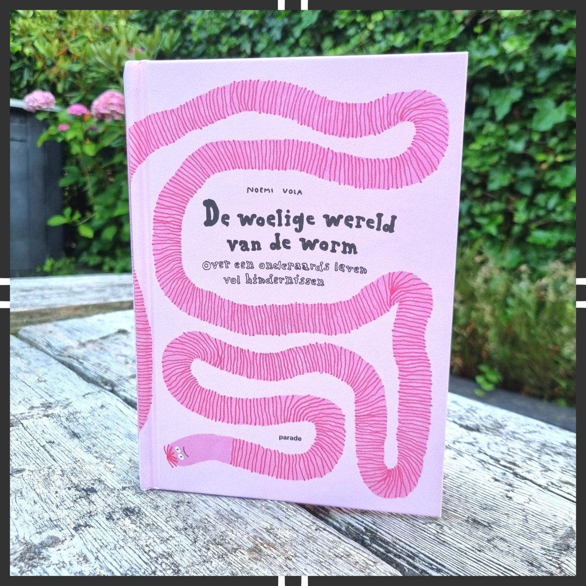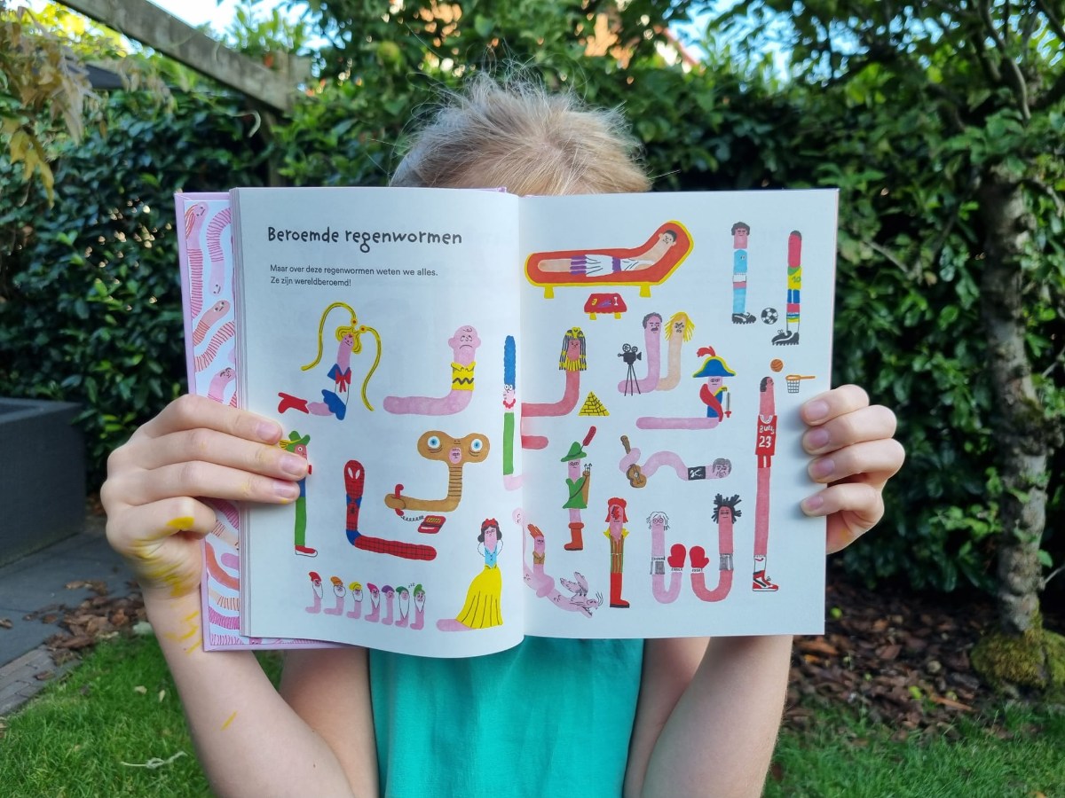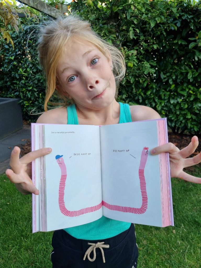 Wauw… dit is toch een geniaal boek! Genoten heb ik van De woelige wereld van de worm. Selena en ik ontdekten een nieuwe uitgever van kinderboeken, Parade, en mochten twee fantastische boeken van hen recenseren. Wat een binnenkomers zijn dit in de kinderliteratuur. Echt onderscheidend en gedurfd! Selena las Vogeleiland en ik mocht deze roze grote baksteen over wormen lezen. Hilarisch!