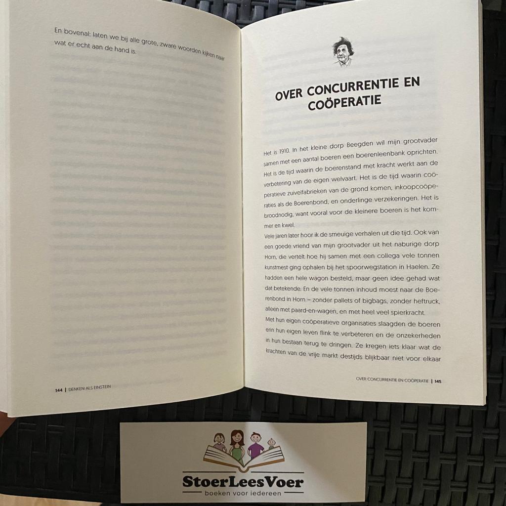 Daarmee is Denken als Einstein een strijdlustige oproep tegen het maakbaarheidsdenken in het bedrijfsleven. En in de samenleving. Schreurs deelt inzichten waar managers, ingenieurs, bestuurders en iedere andere kritische denker wat aan heeft. Er staan tips in het boek en het kan sommigen net dat nodige zetje geven om anders te durven denken en werken.