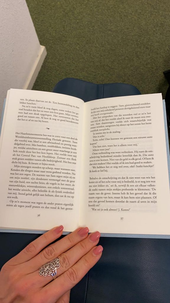 Verder vind ik dat desnoods de hele wereld mooi geschreven is en dat zinnen vaak meerdere lagen hebben zoals wanneer Anna de bank belt: ‘Mijn vraag viel buiten alle categorieën, dus wachtte ik tot het einde van het keuzemenu.’ Dit is mooie veelzeggende symboliek, omdat je het ook op andere dingen kan toepassen dan bij het bellen.